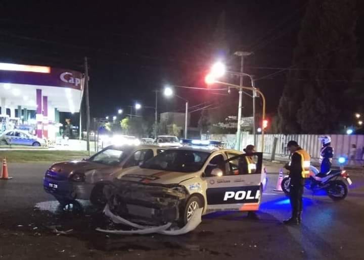 Anoche un accidente ocurrido en calles Rastreador Calívar e Ignacio de La Roza, involucró a un patrullero de la Policía Provincial.