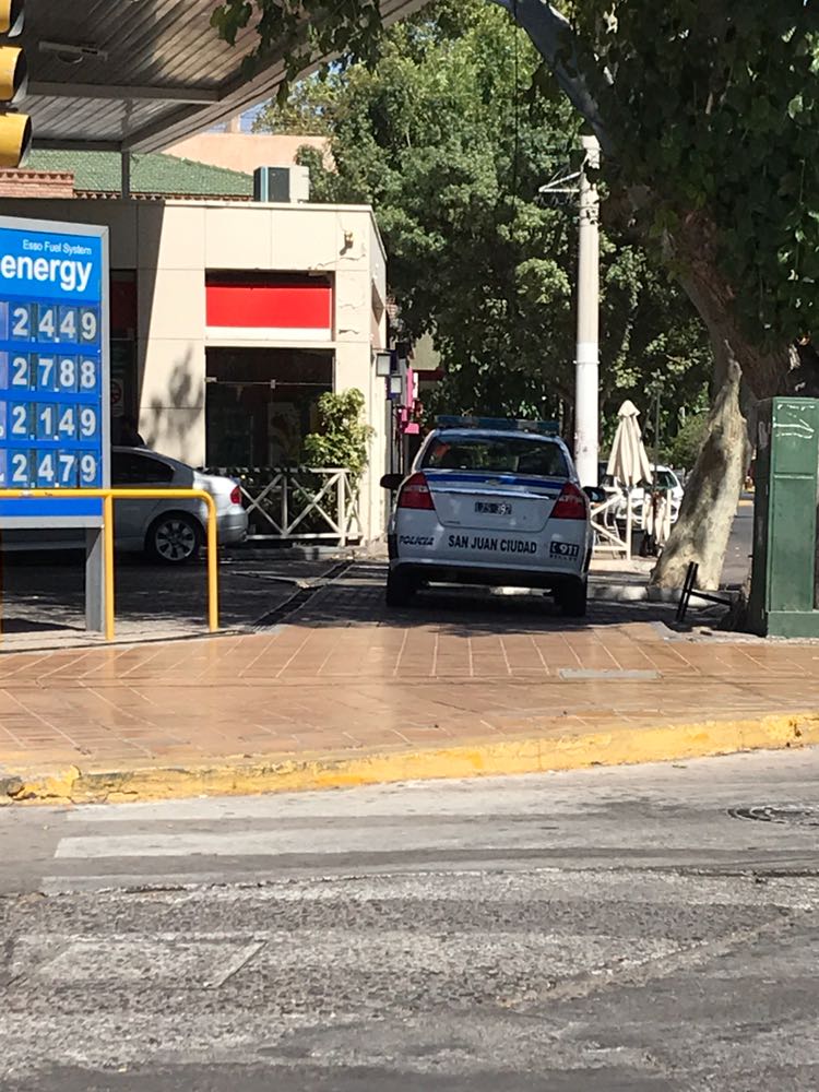 Un lector envió una imagen y el siguiente comentario: “Este móvil policial de la comunal de la Municipalidad de la Capital estuvo casi toda la mañana de este sábado en la vereda, aprovechando la sombra, claro. Los peatones por la calle, los señores donde se les plazca”.