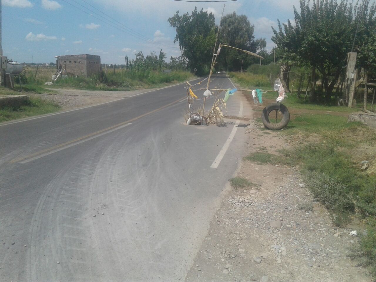 Calle Vidart y calle 10, Pocito. El pavimento se hundió y los vecinos han tenido que señalizarlo.