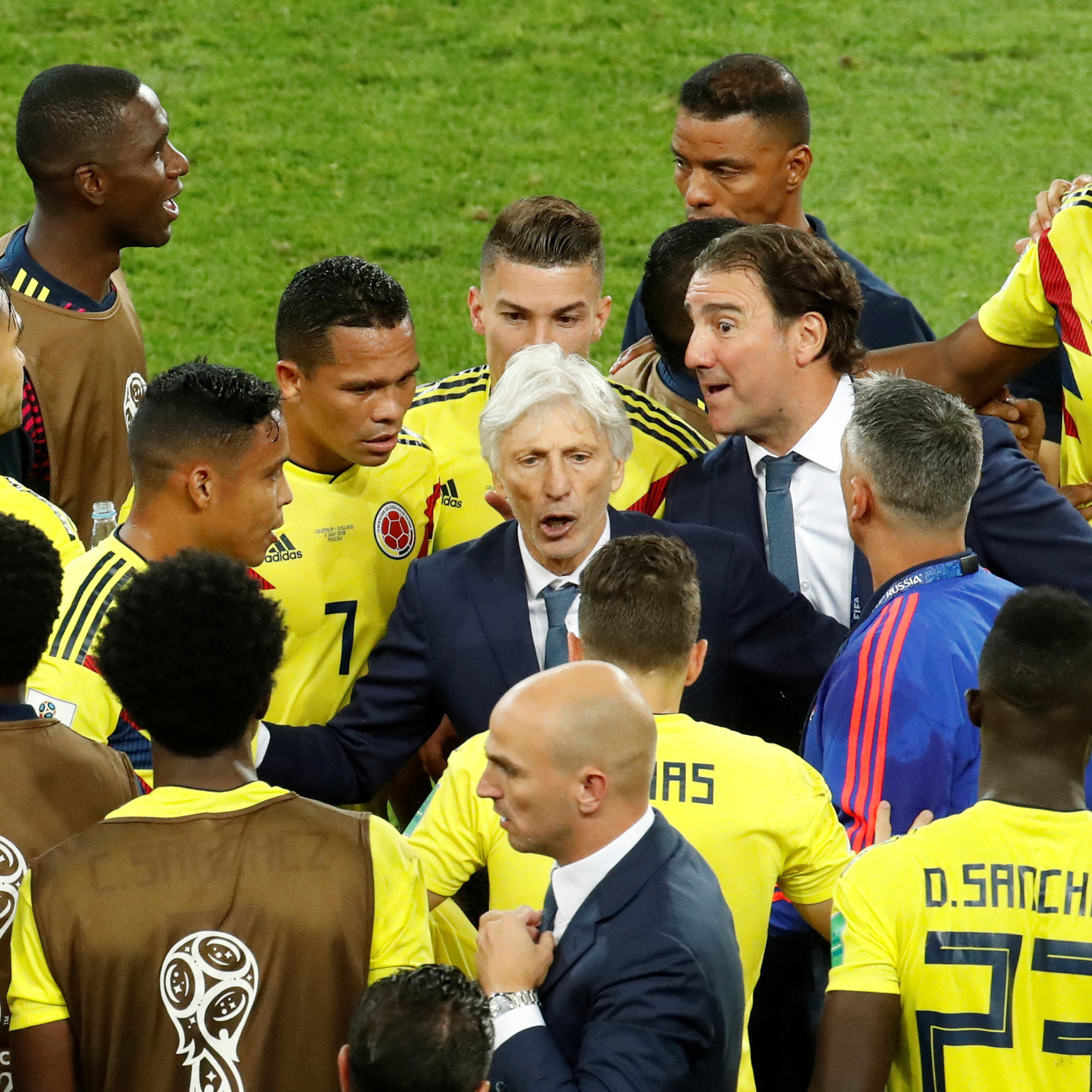 "Tenemos mucha confusión. Me parece que estamos todos confundidos con este tipo de jugadas (el agarrón entre Sánchez y Kane). Es una situación difícil. Nosotros hicimos un gran desgaste y fuimos valientes, pero nos faltó un poco de profundidad. Fue difícil entrar en un partido con mucho ritmo, porque había temor cuando la pelota iba al área", añadió el técnico que no quiso desvelar si continuará al frente de la selección colombiana. "Nunca hablo de futuro. Hoy estamos dolidos porque hemos entregado todo. Hoy, sólo hay que hablar de este partido", dijo el entrenador argentino.