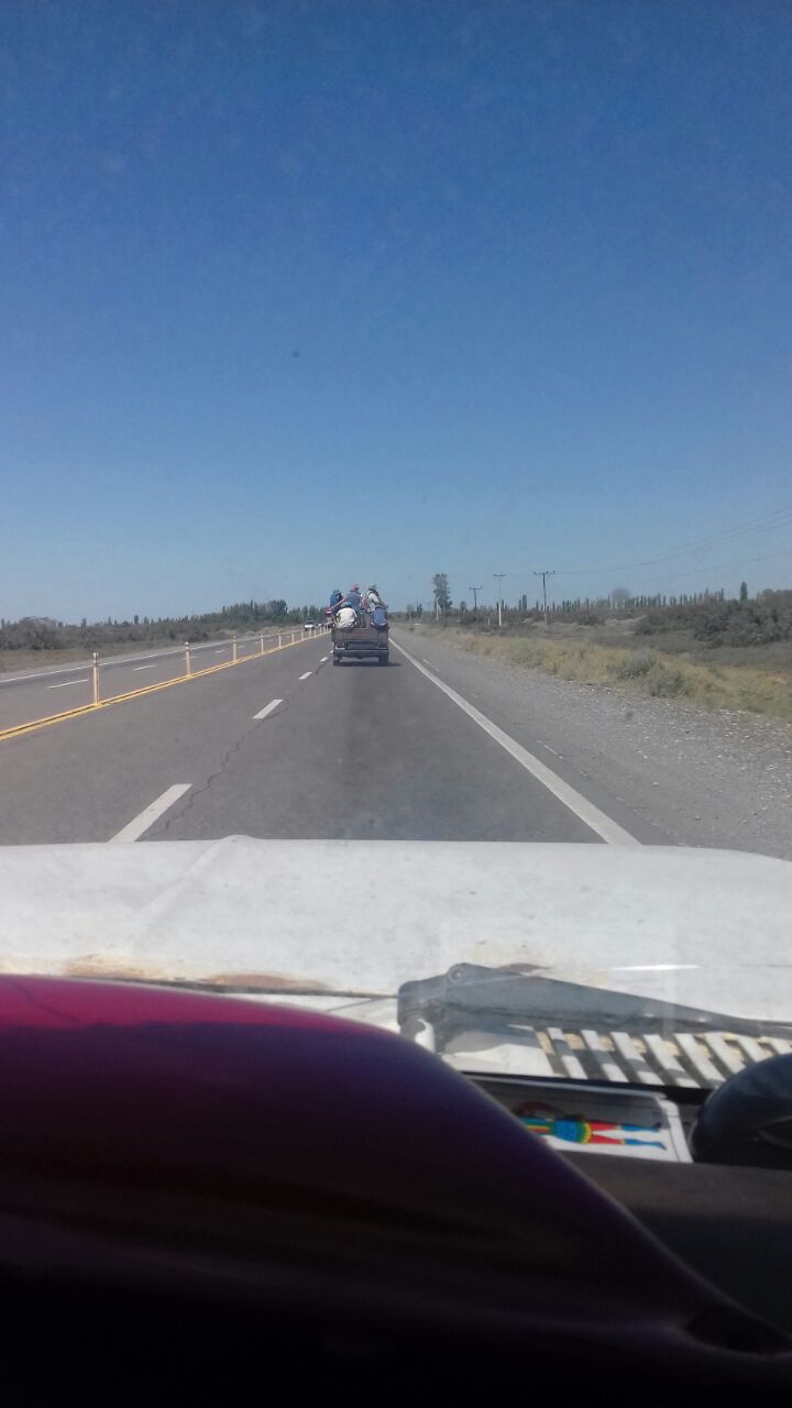 Mirá esta foto en la Ruta 40 camino hacia al Cerrillo. Es una camioneta Rastrojero que lleva como 15 personas atrás. Todos parados y corriendo el peligro de caerse.