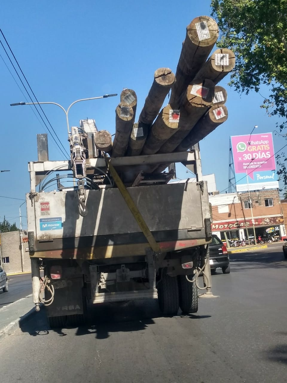El vehículo de gran porte trasladaba postes de madera. “¿Puede ser que ande así? Podría ocurrir una tragedia”, afirmó.