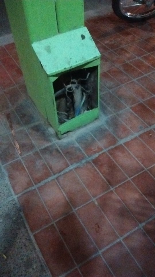 Esto se encuentra en el poste de un cartel luminoso de una reconocida cadena de supermercados sobre la vereda norte de calle 25 de Mayo antes de Jujuy, en Capital.