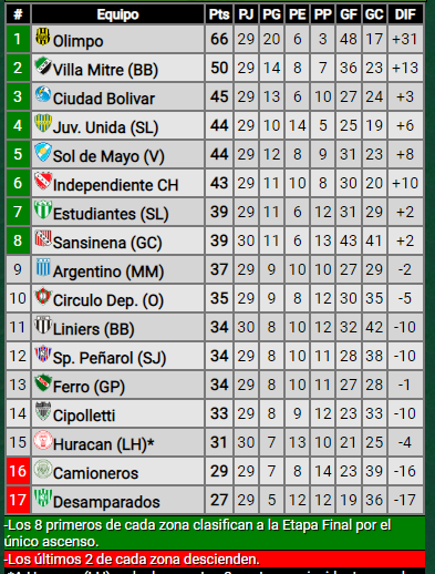 Es una fecha clave en el Federal A. Por la mañana, Liniers -el próximo rival de Desamparados- dio un paso más para asegurar la permanencia y venció como visitante a Cipolletti por 2 a 1. En tanto que Ciudad Bolívar derrotó por 2 a 0 a Ferro de General Pico que continúa complicado con el descenso. Por último Olimpo venció por 2 a 1 a Independiente de Chivilcoy.