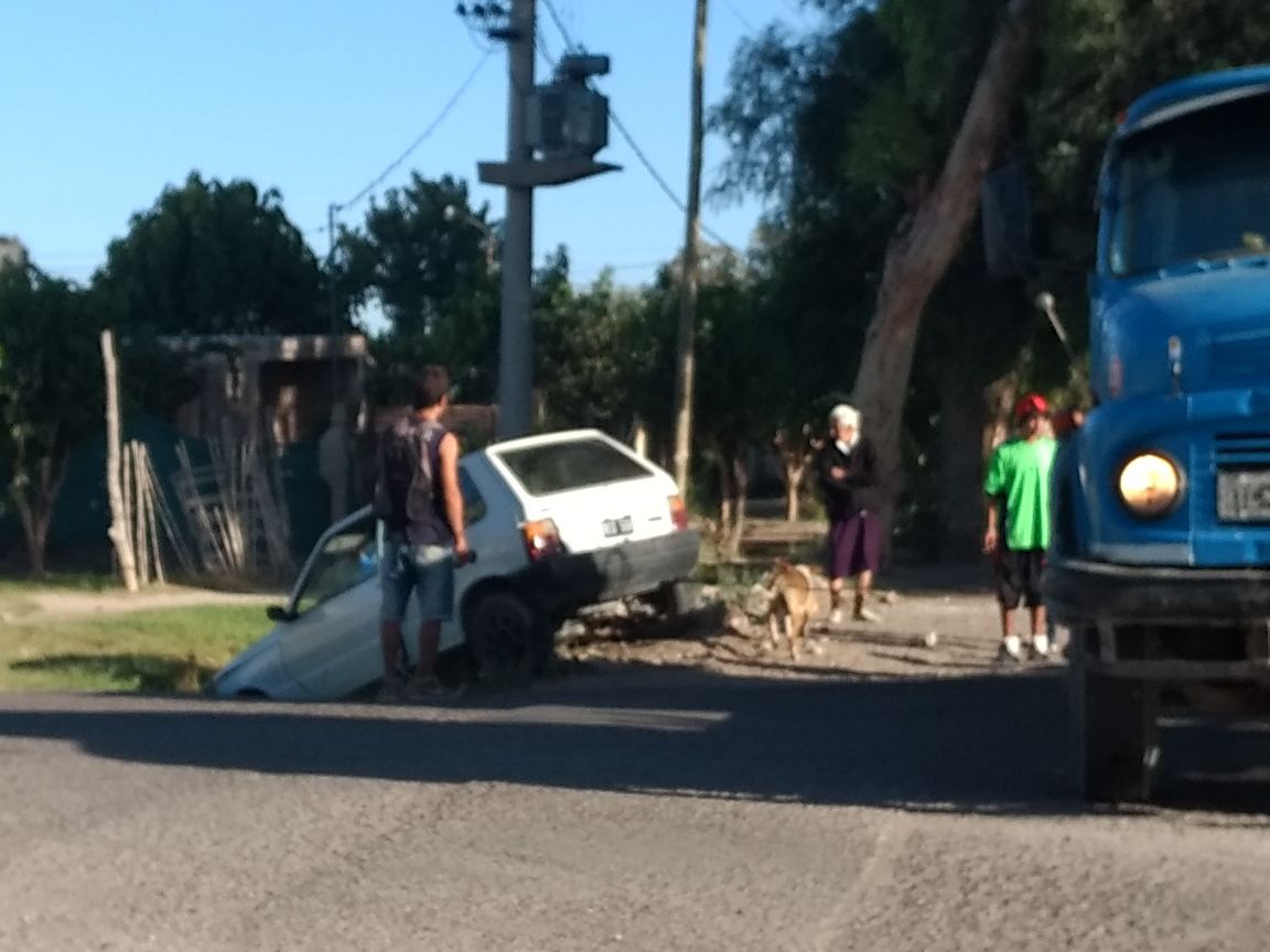 Un Fiat Uno color blanco terminó en un canal este sábado en la mañana en calle Pellegrini, entre Ig. De la Roza y Calle 5, a la altura del camping de UDAP, en La Bebida, departamento Rivadavia.