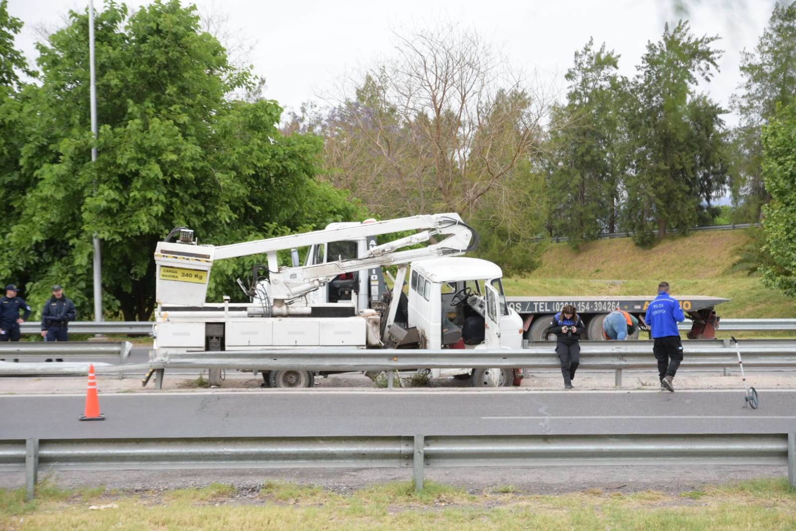 Aparentemente, el camión Mercedes Benz que trasladaba una grúa habría sufrido un desperfecto técnico, que l llevó a desviarse y quedar en el cantero central.