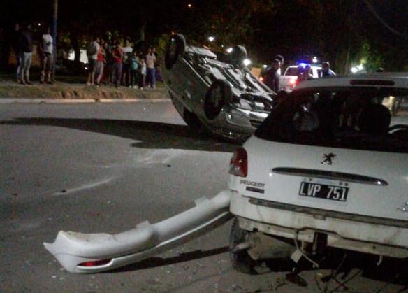 Durante la madrugada de este lunes se produjo un fuerte choque que terminó con un auto volcado en pleno centro caucetero.