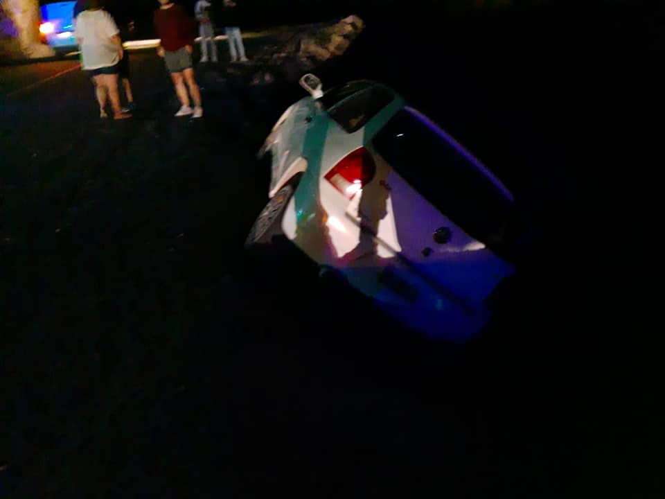 El Volkswagen Gol era conducido por Iván Luna, quien perdió el control, por lo que su auto se despistó y terminó quedando sobre el guardarraid a punto de caer al precipicio.