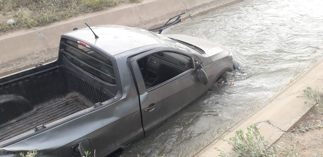 Un espectacular accidente se produjo en la mañana de este sábado en Sarmiento. Un hombre que circulaba junto a dos jóvenes en una camioneta, perdió el control, volcó y terminó adentro de un canal. El conductor debió ser trasladado al Hospital Rawson por los golpes que sufrió, aunque se encuentra fuera de peligro.