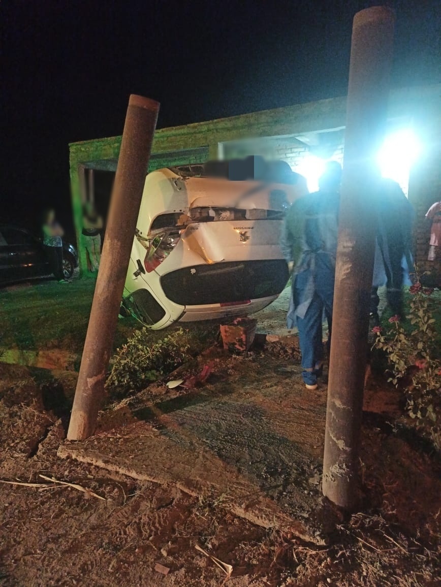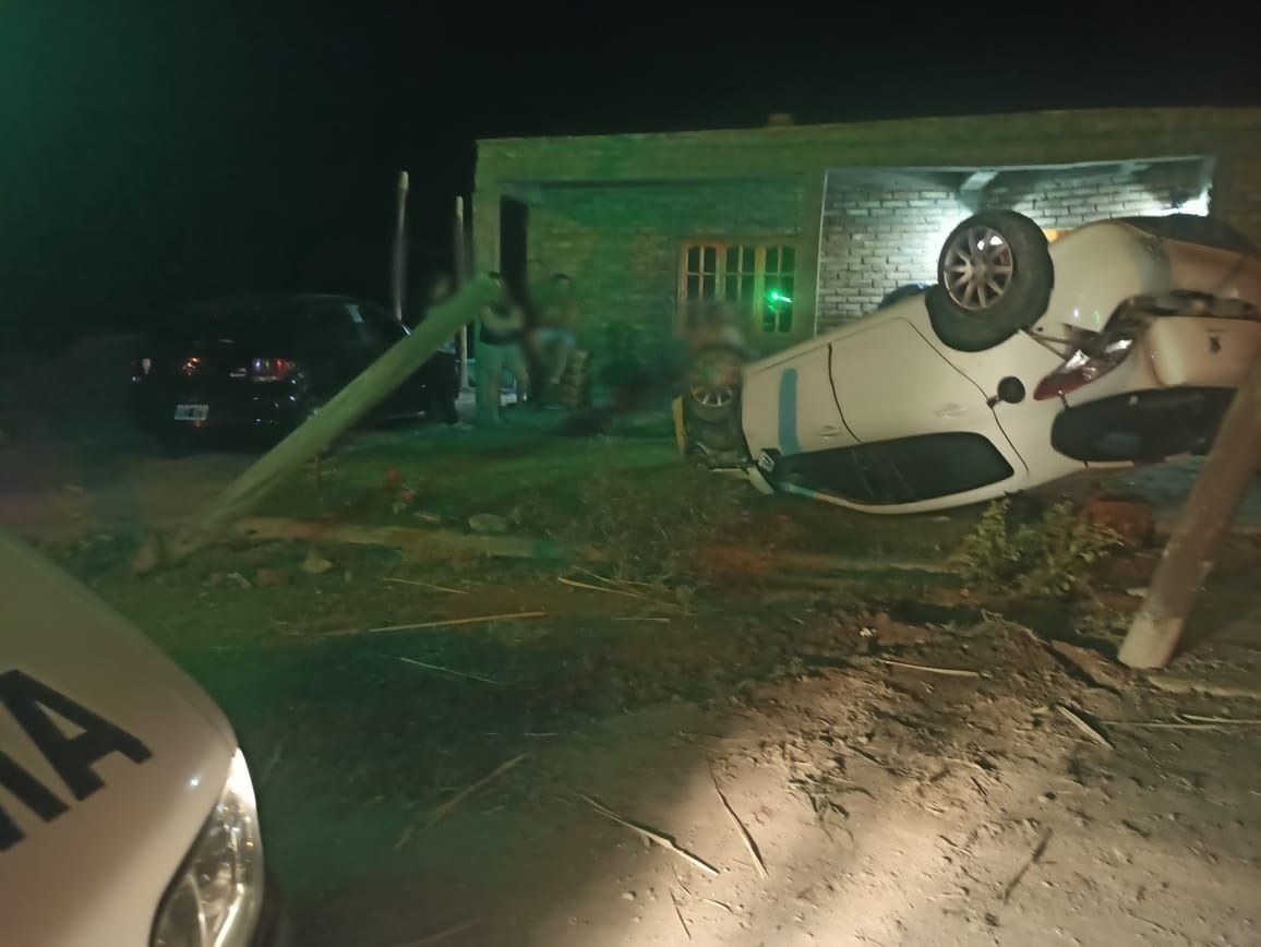 El joven conductor de un vehículo perdió el control, volcó y terminó en el jardín de un domicilio. El hombre fue trasladado al Hospital de Pocito con algunos golpes, pero fuera de peligro.