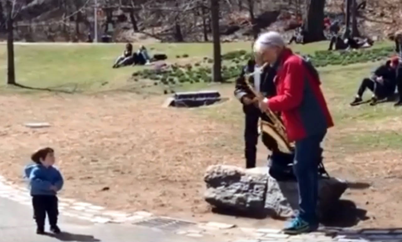 Roberto Pettinato fue filmado tocando el saxo a la gorra en Central Park, Nueva York, y el video rápido se viralizó en las redes sociales.