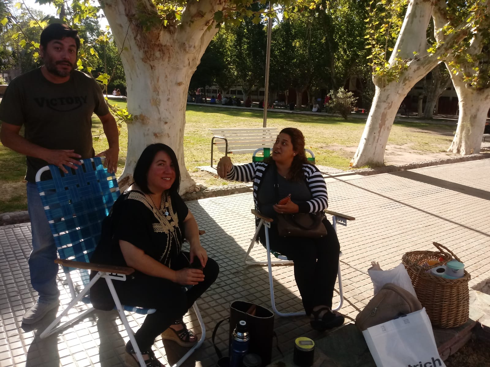 Frente a estas últimas, los padres y algún que otro abuelo y hermano, llegados de diversos departamentos, se sentaron en los bancos y el césped de la plaza, mate en mano y con semitas. Eso para esperar a las 11:30, momento en que se espera que los alumnos salgan del aula. La palabra más común entre ellos al preguntarles qué sentían fue "nervios".