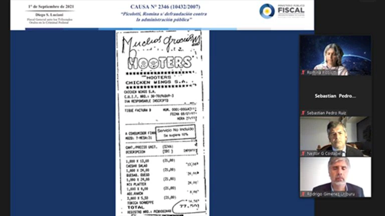 Entre los gastos, el fiscal detalló comidas en parrillas, desayunos, restaurantes de sushi, flores, productos de farmacia, alimento balanceado para perros, carga de combustible, lavado de auto, servicio de lavado de ropa, compra de piedras aromatizadas, sahumerios. En su alegato expuso las facturas de varios de ellos. Uno de los tickets que expuso fue uno de los gastos que más llamó la atención. Es de 77,50 pesos en “Hooters”, un bar que era atendido por mujeres semidesnudas y lleva escrito un “Muchas gracias”. Otro gasto, en el local Pigmento, dice “regalo Flor y Sofi de cumpleaños”.