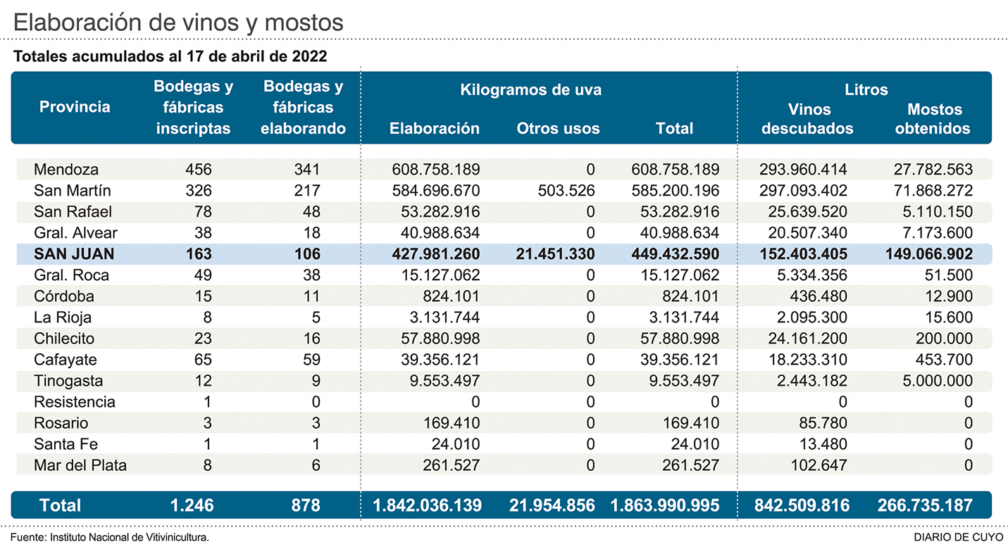 Desde Mendoza, Sebastián Lafalla, de la Cámara de Agricultura, Industria, Ganadería, Comercio y Turismo de Tupungato sostuvo que "compartimos las preocupaciones de los viñateros de San Juan. Y además, el INV hizo un pronóstico malo, con los números errados. Debe salir a controlar que no haya estiramiento de vinos".