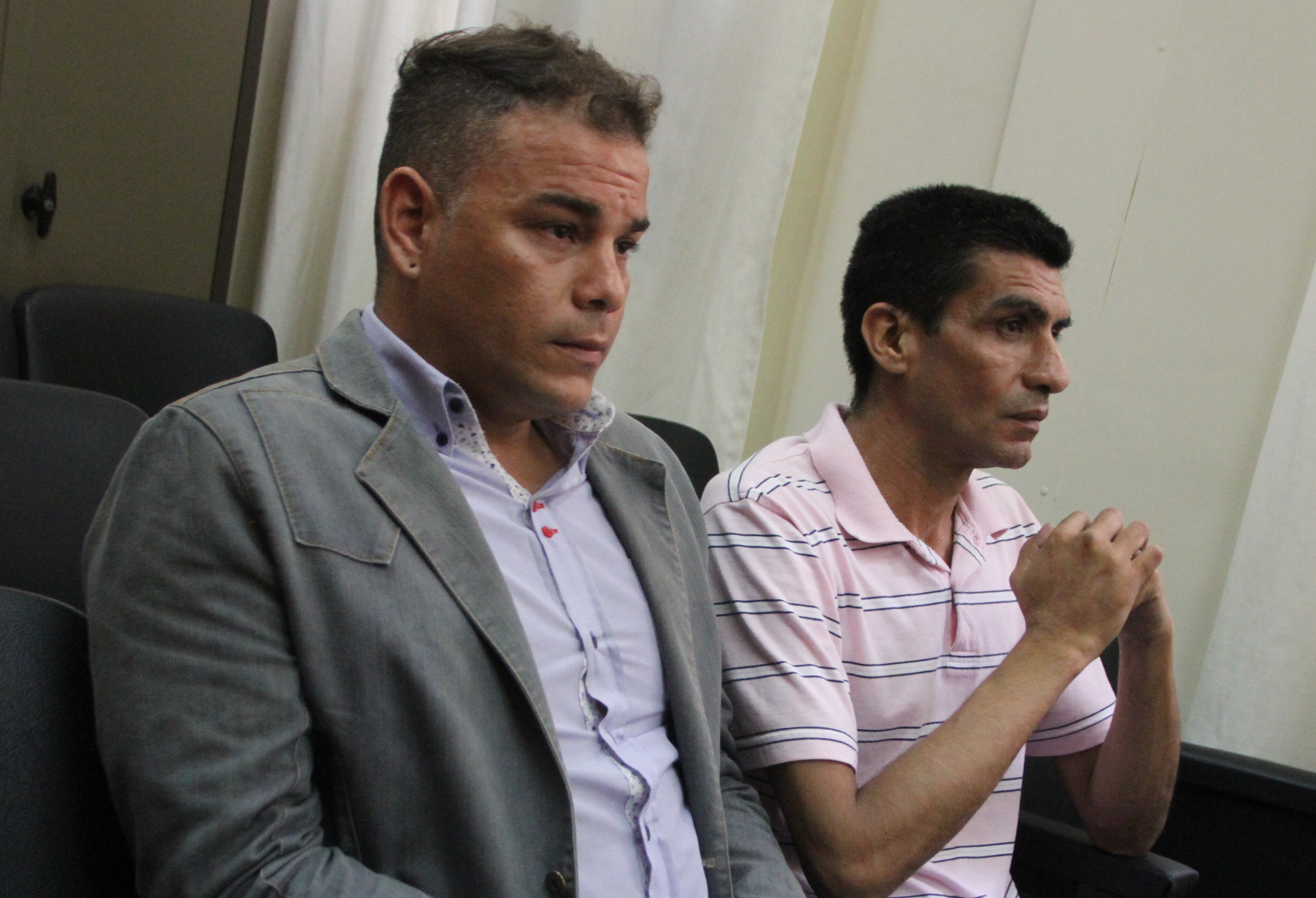 El hijo del expolicía, Javier Porras (36 años, izquierda) dijo que sólo separó a su empleado en un carro panchero Fabián Sánchez (40, derecha) de la pelea.