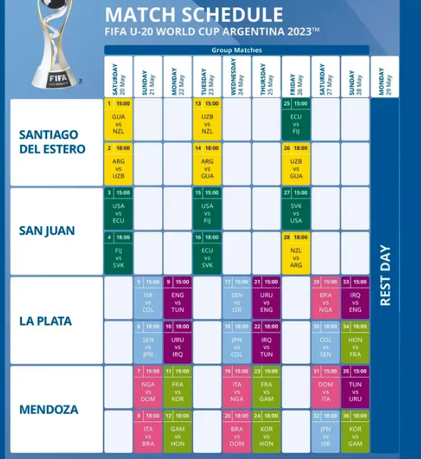 A continuación, el cronograma de partidos anunciados en San Juan y el resto de las sedes: