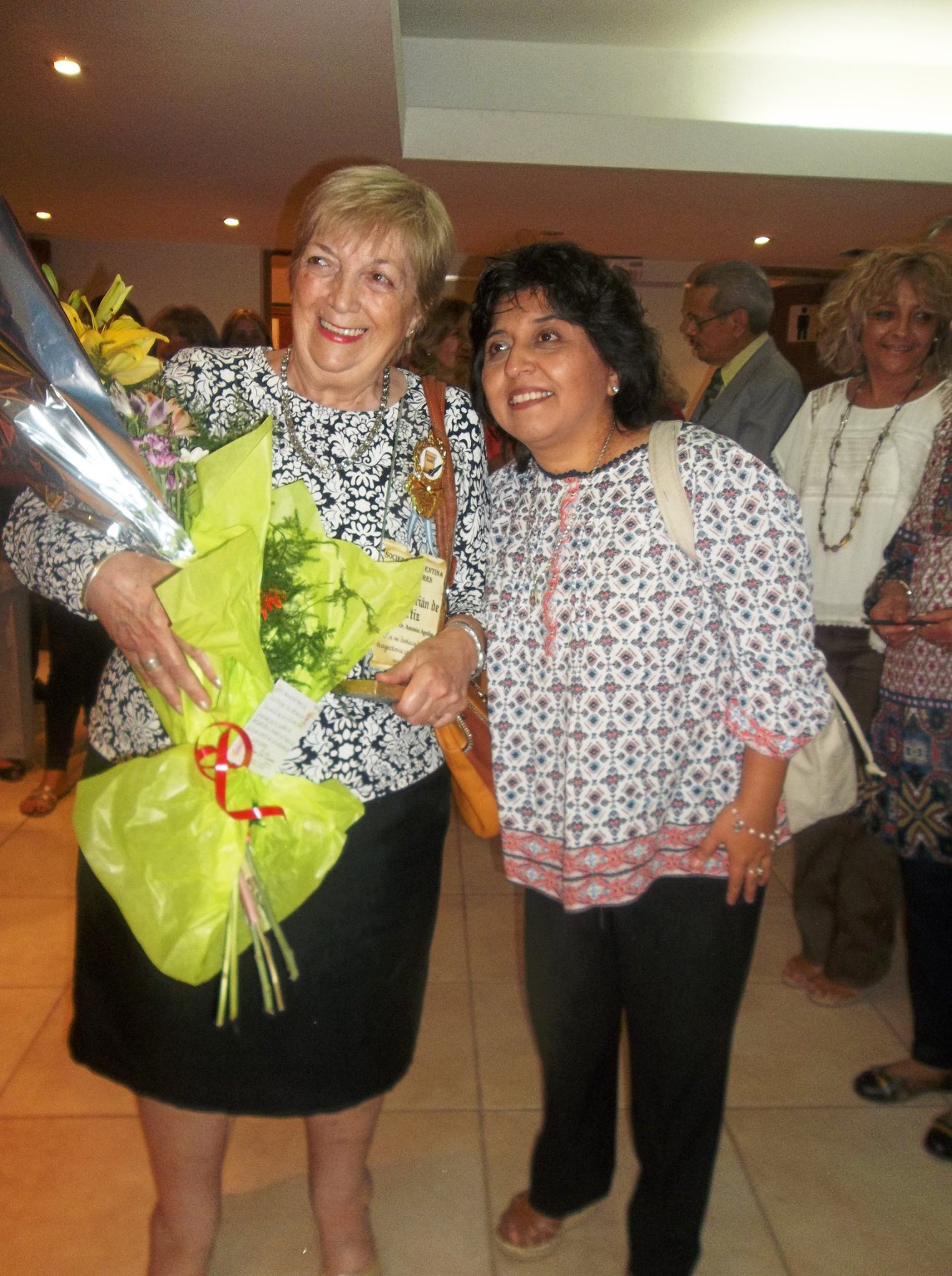 Considerando todos los aciertos de su gestión en la Federación, el florecimiento que marcó su paso en el mantenimiento y sostén de cada biblioteca durante sus años de trabajo el 19 de marzo de 2016 la Sociedad de Escritores le otorgó junto a otras tres bibliotecarias una distinción (en la foto a la izquierda, junto a Liliana Alaniz) que resulta demasiado pequeña para reconocer todo lo que Pilar ha sembrado en su vida dedicada a los libros. Mi recuerdo será siempre el de la sonrisa con la que nos recibía y los buenos momentos delineados al detalle por esta gran señora, puntual, cumplidora, líder en las gestiones cuyo nombre está grabado a fuego en cada una de las bibliotecas que llegaron a comprar textos literarios a la Feria del Libro, o recibieron subsidios gracias a su empeño y capacidad de apertura pregonando con el ejemplo.