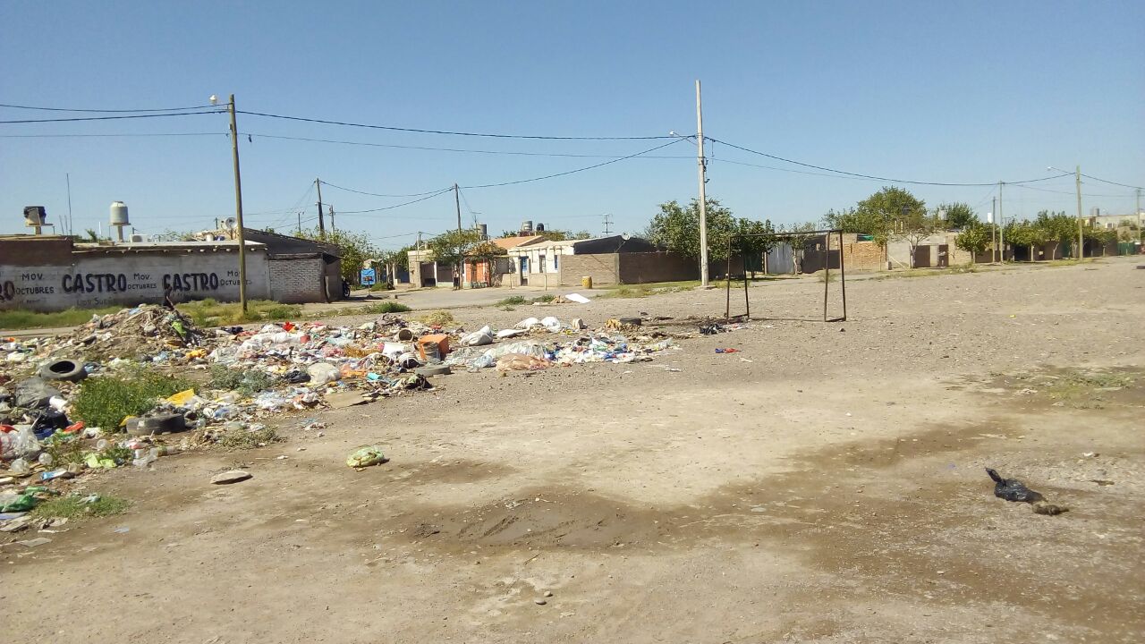 “Así está la plaza del Loteo San José, en Rawson. Colocaron dos arcos y no hicieron más. Se desborda de basura”.