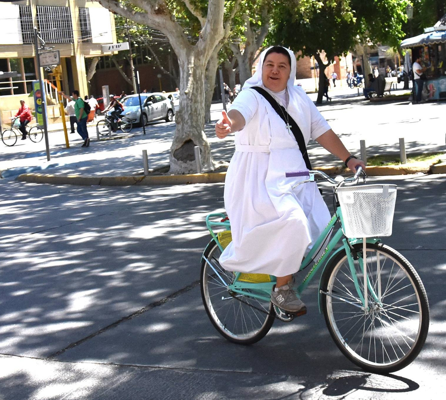 Impoluta en la bicicleta, le puso toda la onda al reconocer que la fotografiaban.