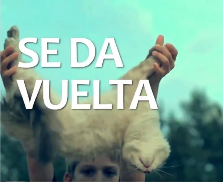 El spot de Juntos por , publicado ayer por Bugallo en Twitter con la frase "¡Se da vuelta! ¡Y esto se da vuelta! ¡Mauricio la da vuelta!", muestra en cámara lenta cómo un niño sostiene con sus dos manos las cuatro patas del gato, y lo suelta, desde una altura de aproximadamente un metro y medio, cuando el felino está de espaldas, dado vuelta.