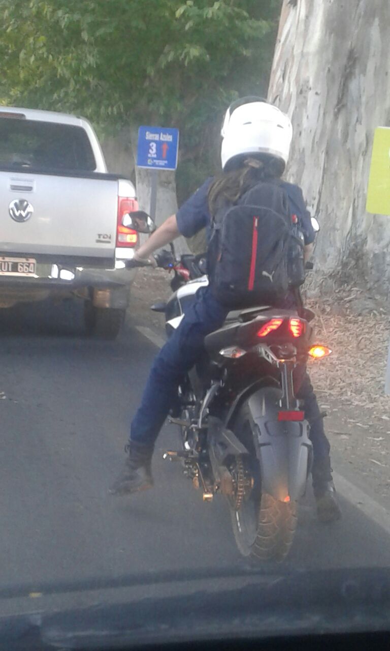 Un lector envió una imagen y el siguiente comentario: “Esta señora policía anda en moto y sin patente… seguro que a ella nadie la para y le hace una multa”.