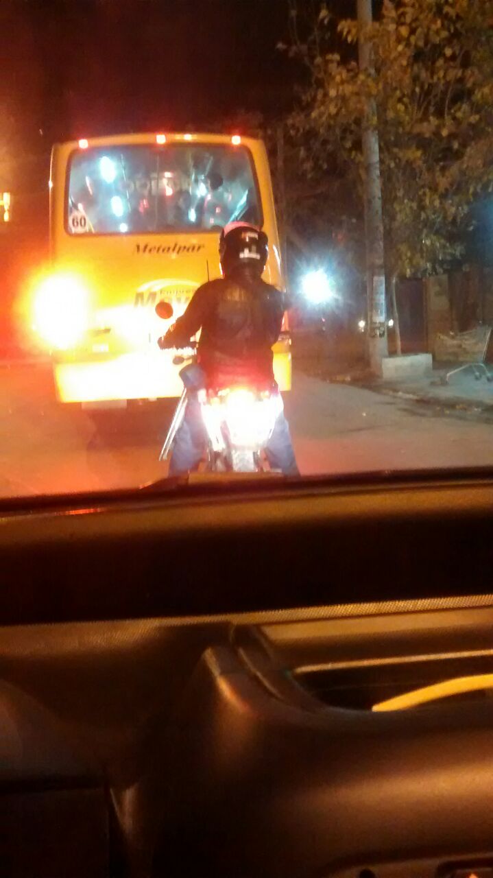 Un lector envió una imagen y el siguiente comentario: "Los que andamos habitualmente en moto nos controlan y nos multan cuando andamos sin chaleco. Este policía, que anda en una moto particular, no usa el chaleco… parece que tienen coronita".