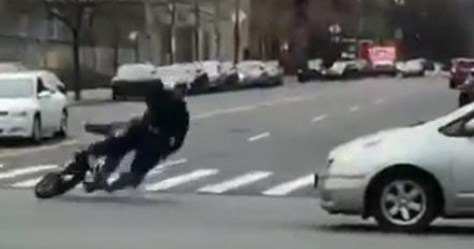 Desconocimiento, nervios, poca pericia o todo junto es lo que le puede haber ocurrido a este oficial de la Policía de Nueva York al tener que llevarse una moto confiscada. Mientras cruzaba la primera esquina perdió el control y terminó tirado en la calle.