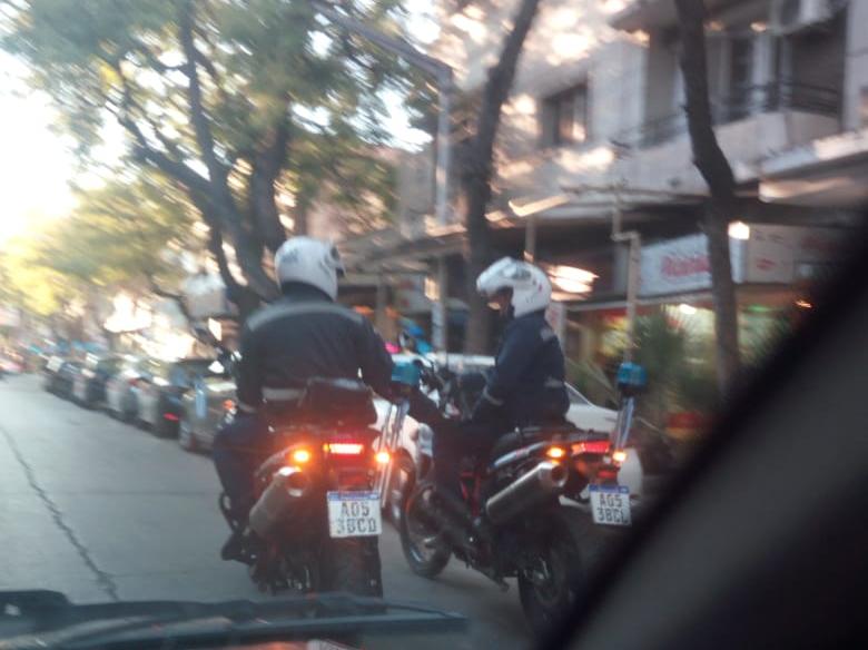 Un lector envió una imagen y el siguiente comentario: "Estos policías en pleno centro, a la par, a pura charla, obligando a todos los demás a ir por el único carril que nos dejaron a los automovilistas".
