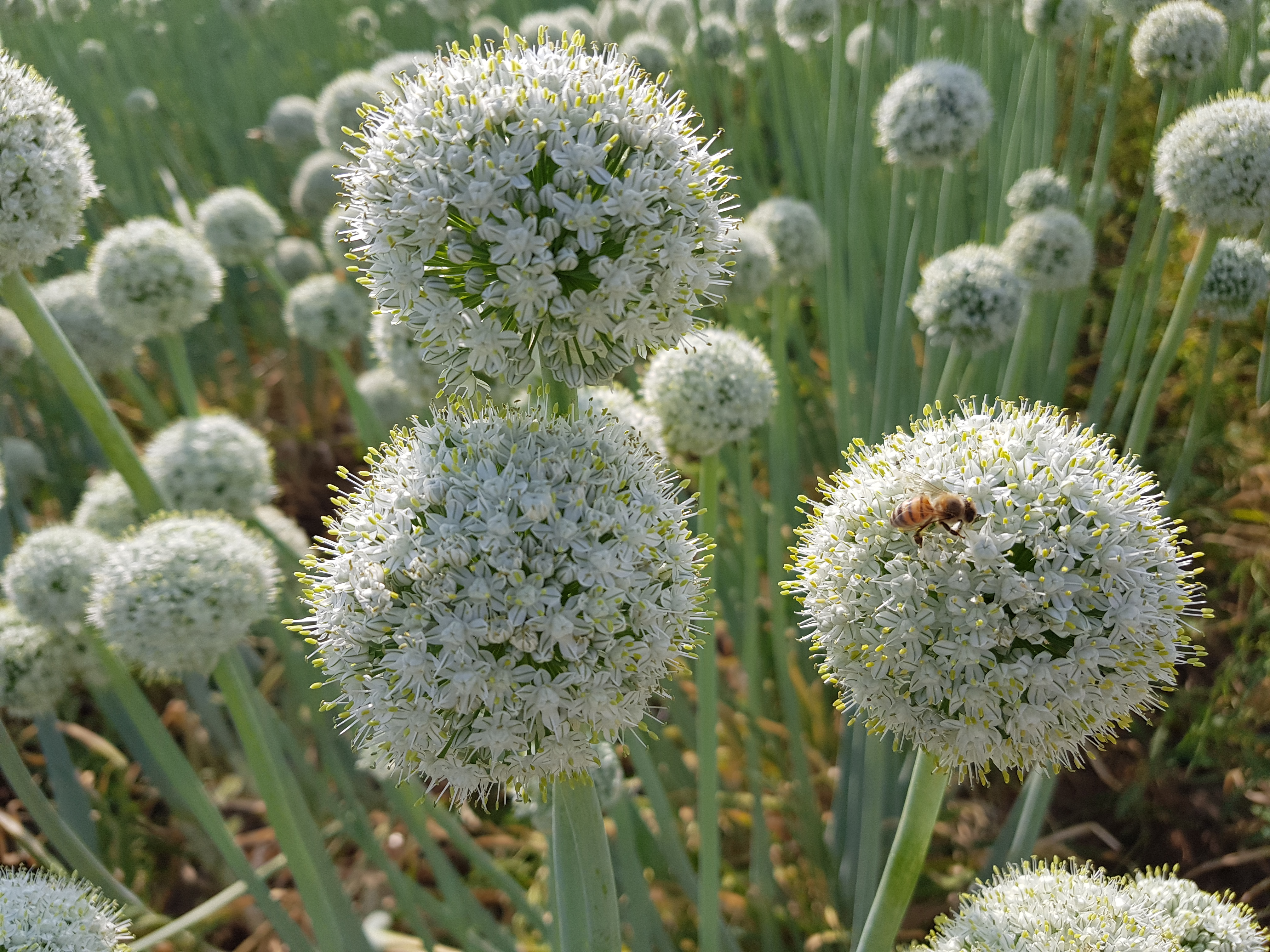 La exacta imagen, tomada esta semana en el Valle de Tulum sanjuanino muestra el simple y efectivo acto de una abeja de trasladar el polen desde una flor a la otra, favoreciendo posteriormente las etapas de la fecundación y el cuaje. En este caso particular, es una inflorescencia de cebolla, que en un futuro se traducirá en un variado número de simientes de gran calidad. Naturaleza en acción. Potencia a futuro.