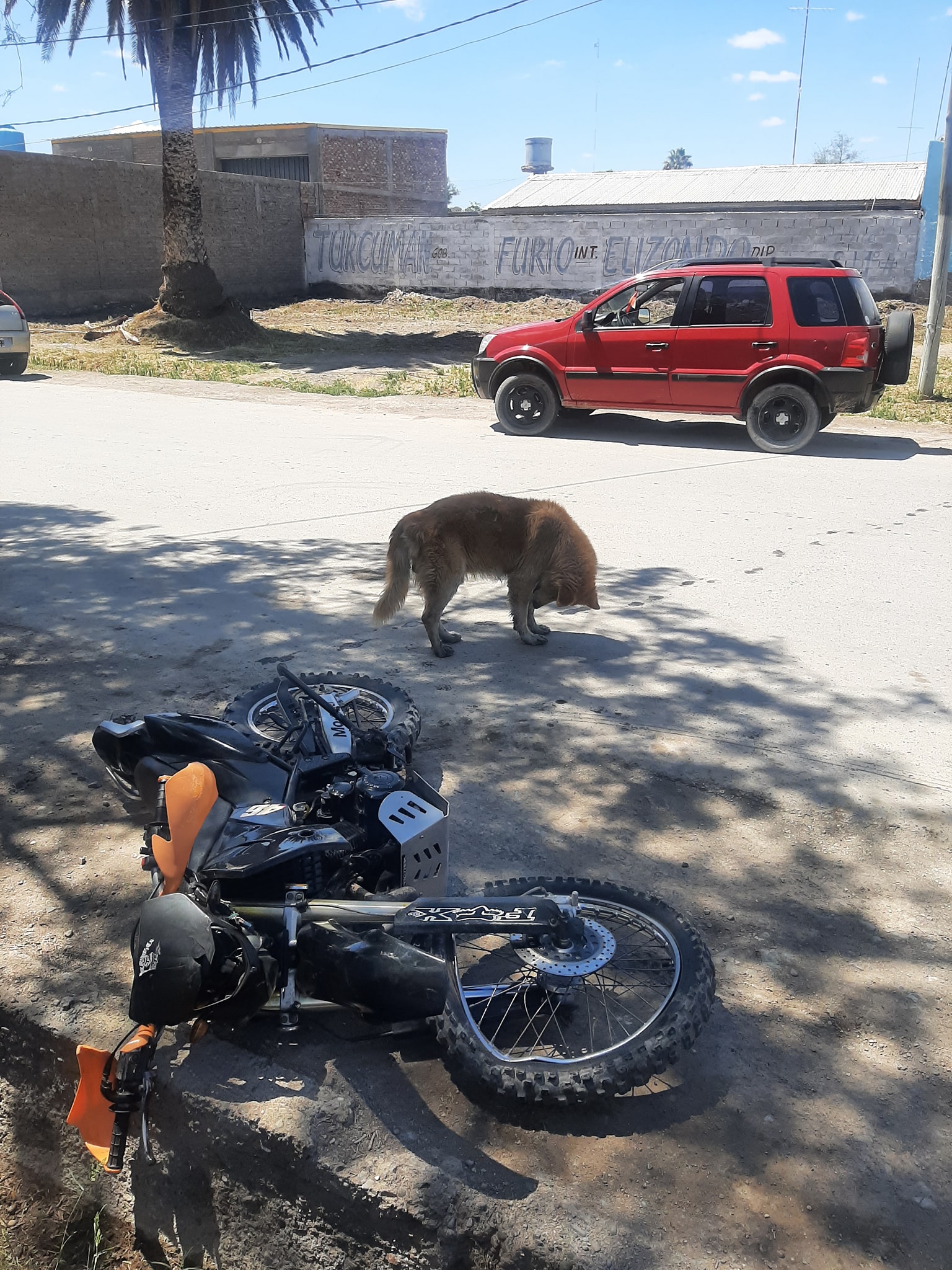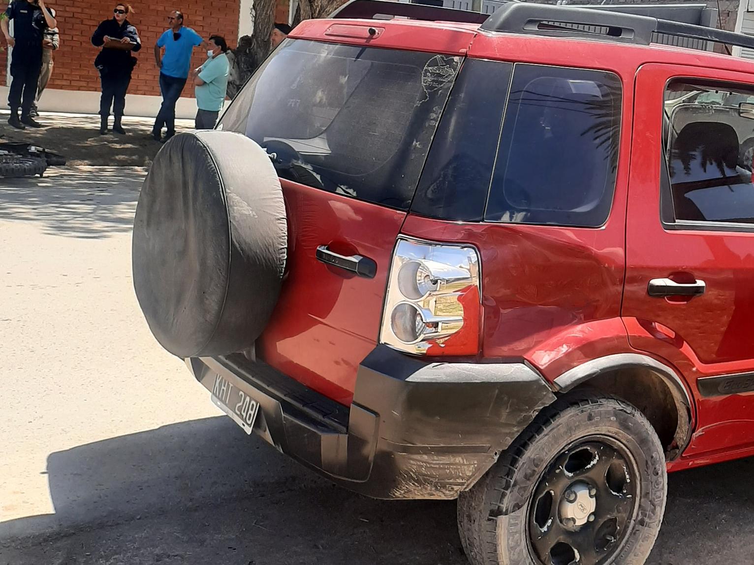 El hecho ocurrió en calle Rivadavia y Joaquín Torrent, en Media Agua. Según indicaron medios locales, una moto enduro calle impactó con una camioneta Ford Eco Sport y por el violento golpe, el motociclista de apellido Quiroga y un menor de edad que lo acompañaba debieron ser asistidos en el Hospital Ventura Lloveras.