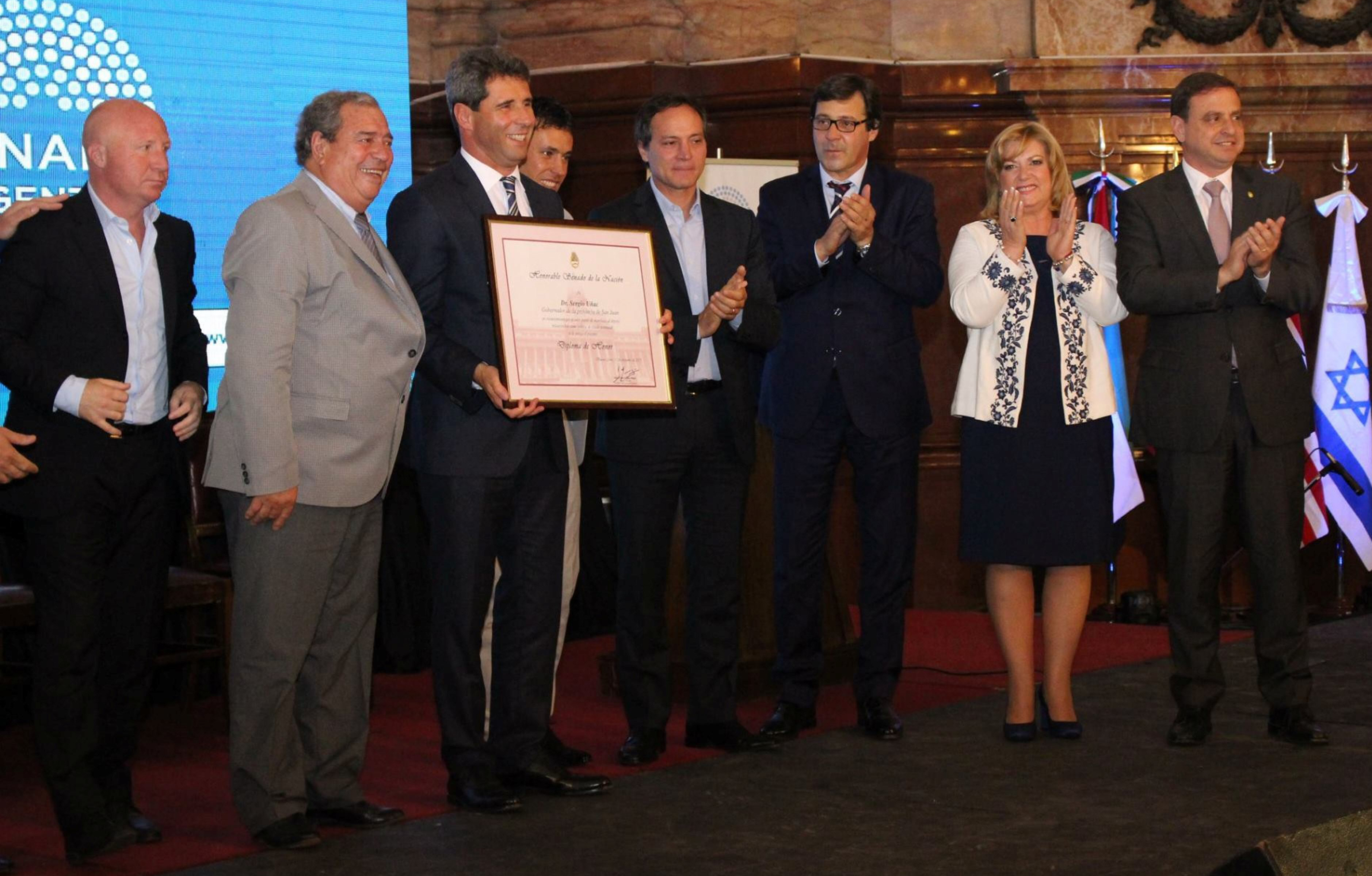 Distinguido. El gobernador Sergio Uñac recibió la mención de honor Domingo F. Sarmiento, la máxima distinción que entrega el Senado.