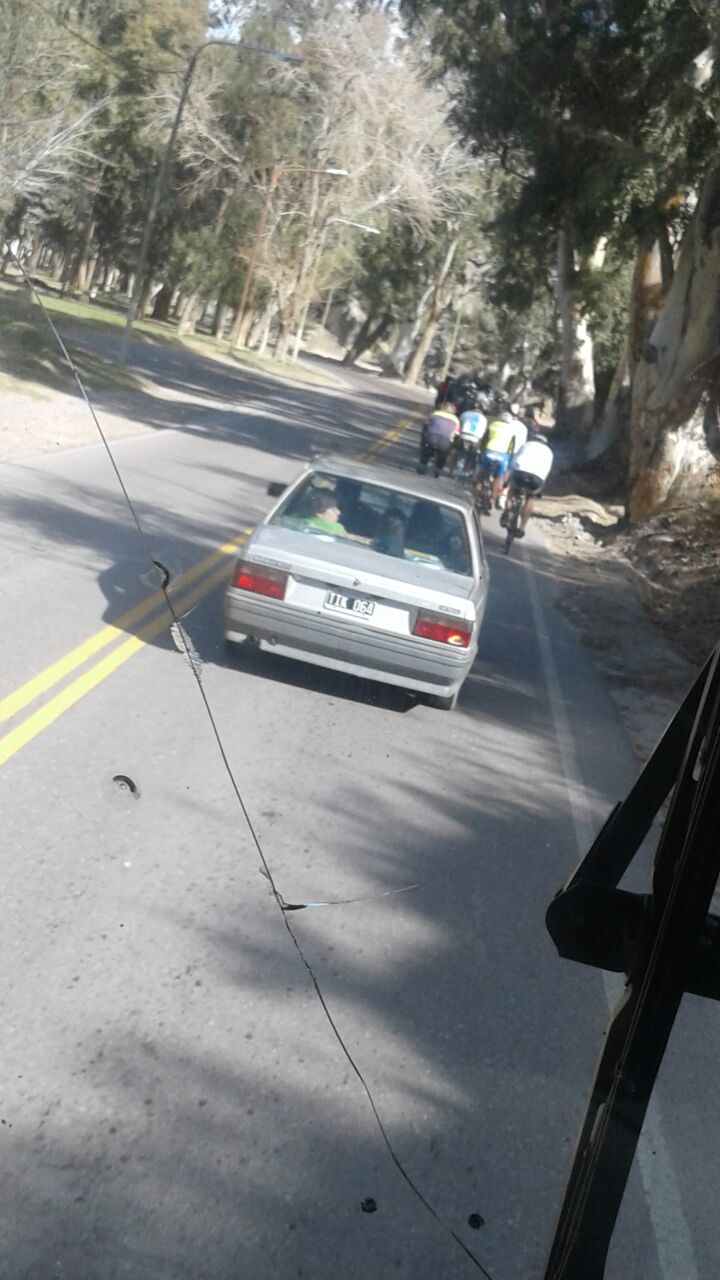 ¡Hola, buenas tardes! Hoy a las 14, por la Quebrada, pasando el autódromo nos encontramos con muchos ciclistas. Ellos iban por el medio de la calle. No respetan ir en fila india.