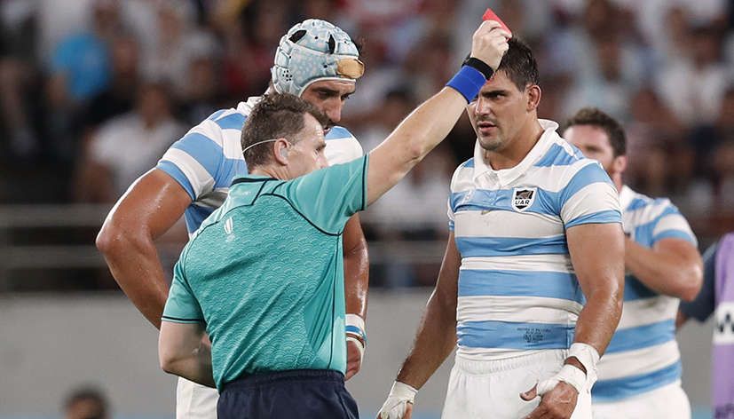 Tomás Lavanini a los 17" del primer tiempo vio la tarjeta roja por un tackle alto con su hombro sobre la cabeza de Owen Farrell. El segunda línea recibirá, al menos, 3 fechas de suspensión, lo que podría significar su despedida del combinado nacional pues se irá a jugar a un equipo europeo.