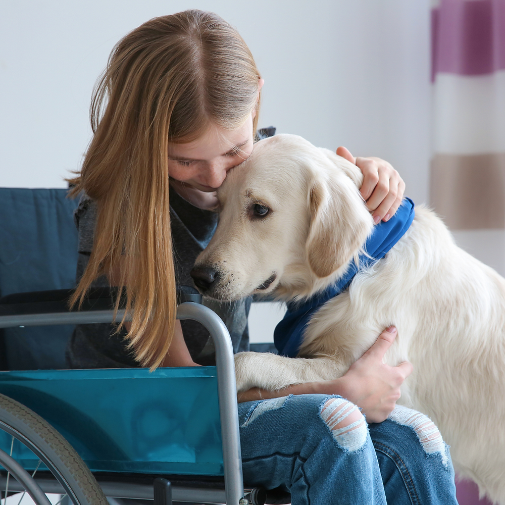 Entre las razas que suelen ser seleccionadas para convertirse en perros de asistencia y perros de terapia destacan el Golden retriever y el Labrador retriever, también son habituales los Pastores belga malinois (inteligentes y con muchas habilidades físicas) y los Alaskan malamuten (leales, trabajadores y muy nobles).