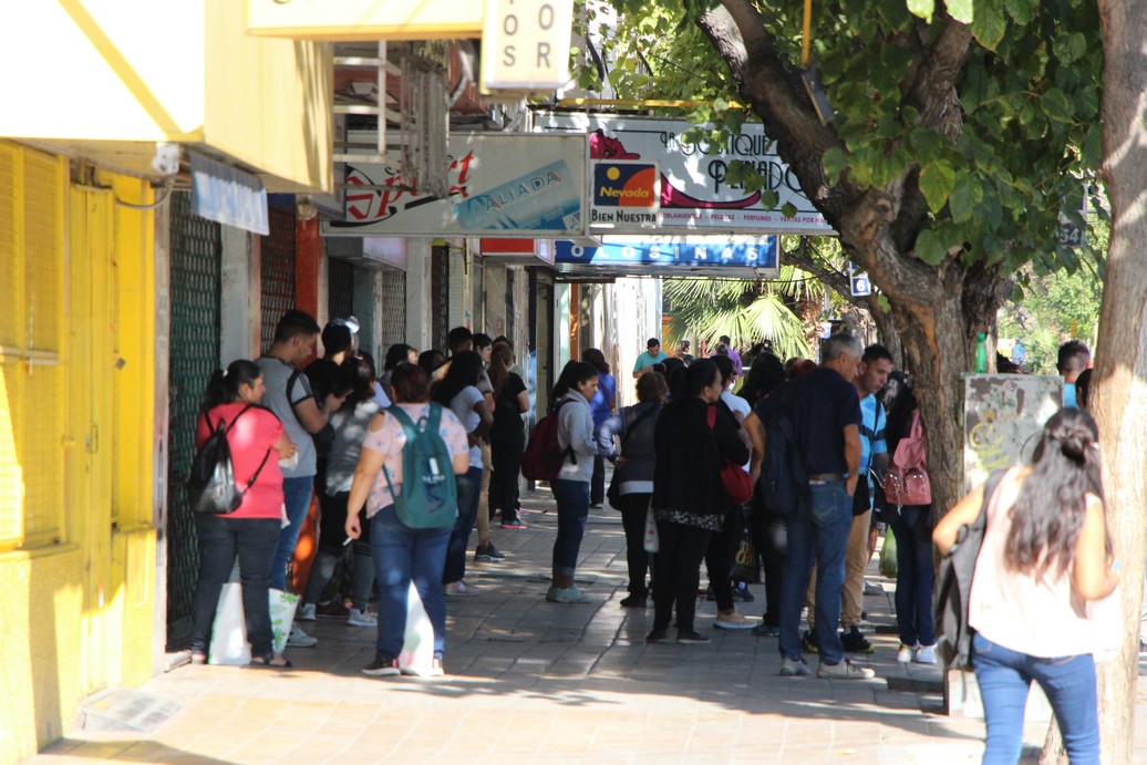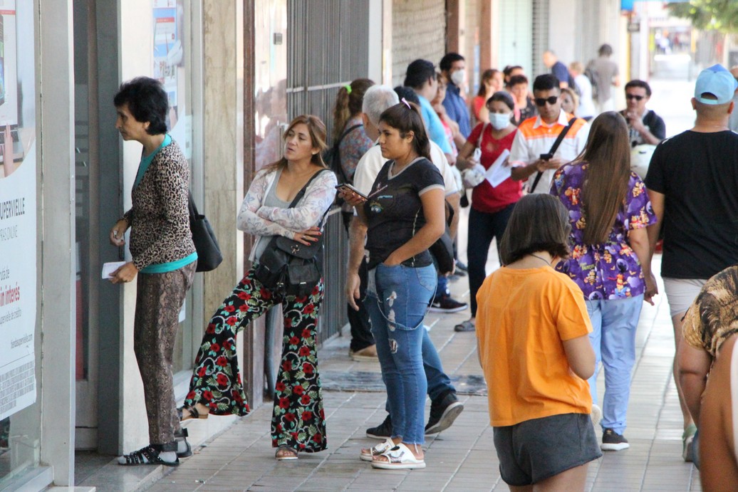 En el primer día del aislamiento social obligatorio en todo el país, la postal en el microcentro sanjuanino es llamativa. El movimiento de público y vehículos es similar al de un feriado, aunque con largas colas en cajeros, farmacias y supermercados.