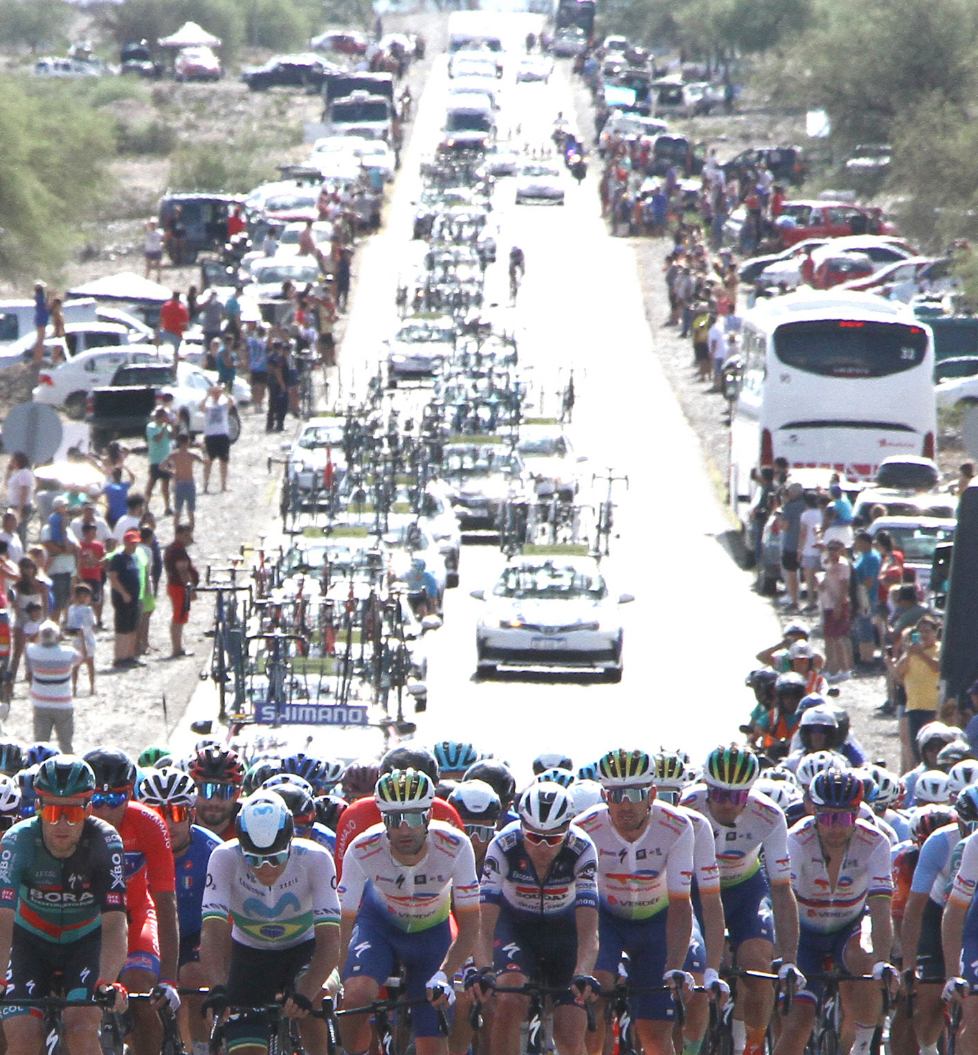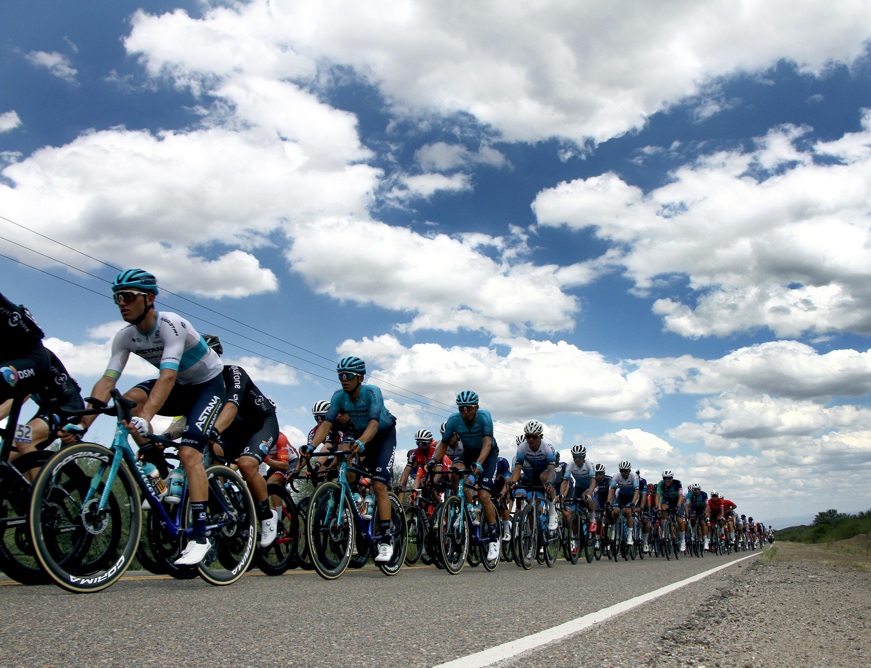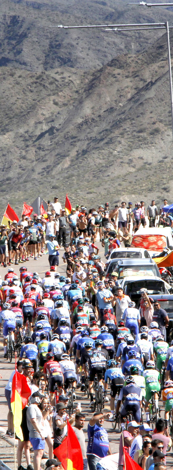 Difunta querida. Los ciclistas viajaron en la primera etapa al paraje de Vallecito. Testigo. La organización dispuso de un helicóptero para seguir de cerca la competencia. Los ídolos, de cerca. Una nene con su querida bicicleta ve el paso del pelotón, con los equipos de elite en primera fila. A subir. Los ciclistas encaran una de las tantas subidas a los Caracoles, en una postal magnífica y para el recuerdo de todos. Bendición. El pedalero se tira agua, en una etapa donde el termómetro pasó los 40º. Las nubes y el pelotón. La semana de la Vuelta tuvo mucho calor, pero también momentos donde el cielo algo nublado se ‘apiadó’ de los pedaleros.