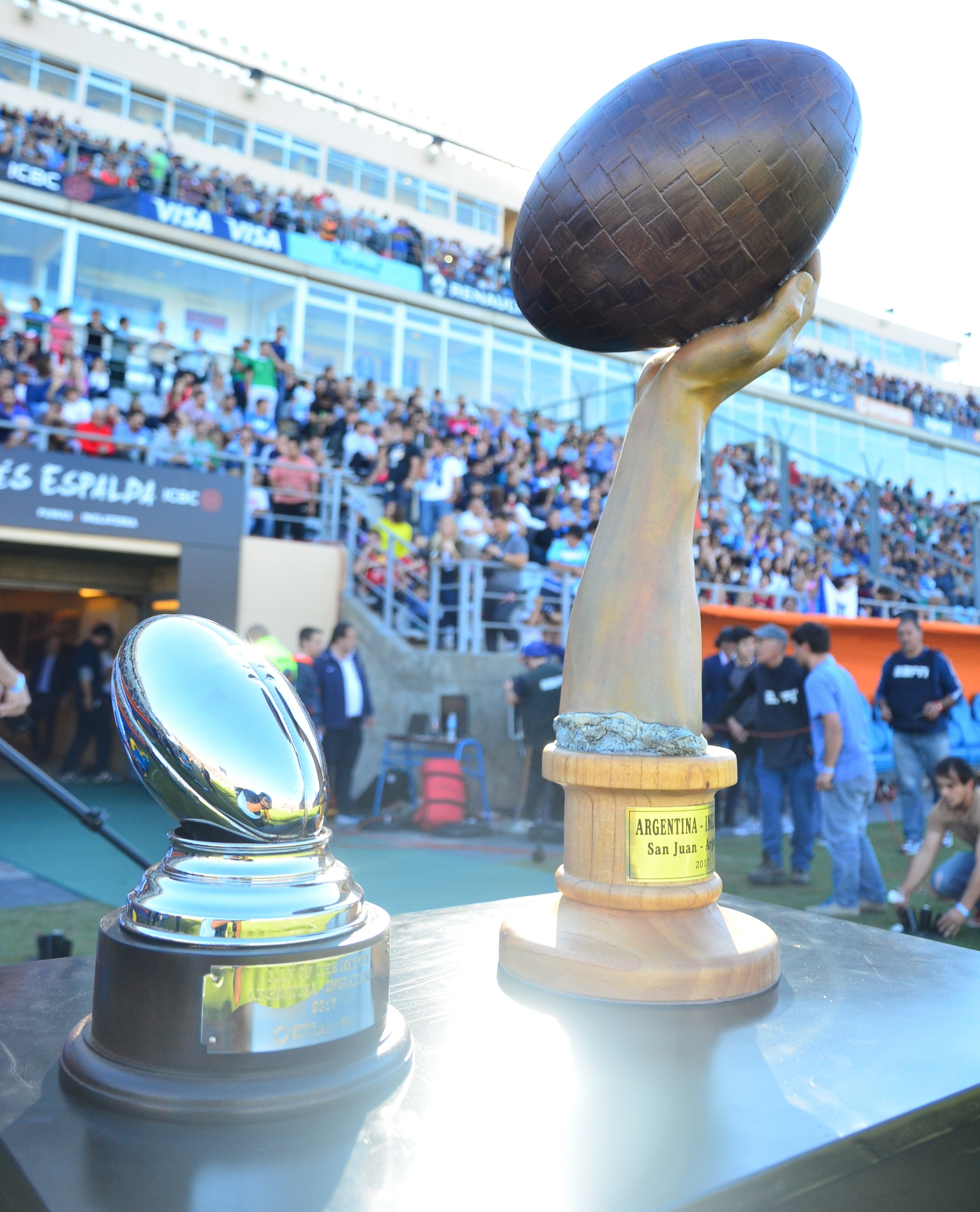 Obra. El trofeo del partido fue una obra del artista Hugo Vinzio. Irá a las vitrinas de la RFU, la unión inglesa.