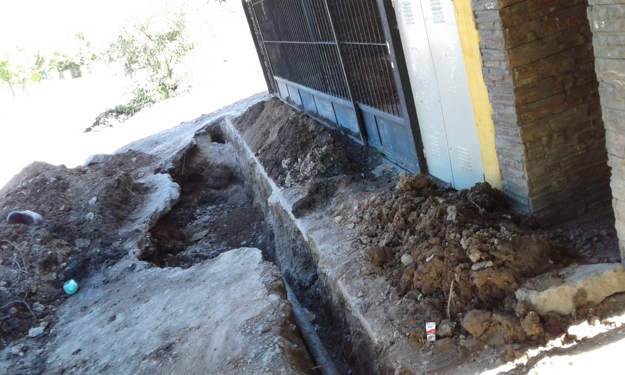 "Buenas. Estos departamantos, ubicados en avenida Rioja antes de llegar a Circunvalacion, Concepción. La empresa que ha los ha construido realizó un pozo negro porque no hay cloacas y ha dejado un tanque de agua en la vereda, que no está permitido.