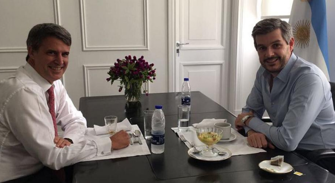 El ex ministro de Hacienda, Alfonso Prat-Gay, almorzó con el jefe de Gabinete, Marcos Peña, en medio de rumores sobre un posible nombramiento como embajador en Estados Unidos tras la intempestiva renuncia de Martín Lousteau para competir en las legislativas. Consultado sobre la posibilidad de su mudanza a Washington, el exministro evitó responder, aunque tampoco lo negó.