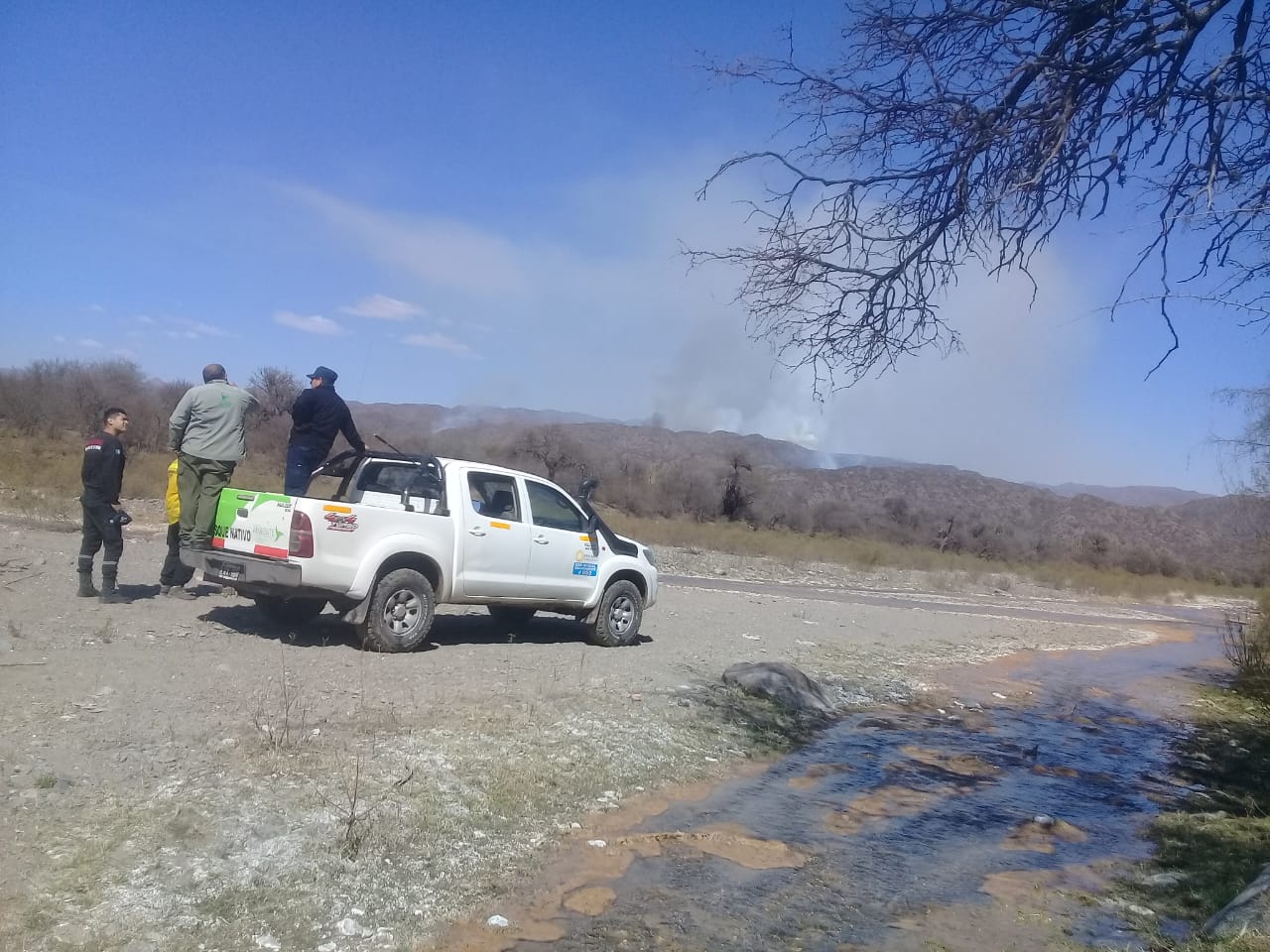 Bomberos de Policía, Bomberos Voluntarios de Valle Fértil, Guardaparques de Ambiente y Personal de la Municipalidad de Valle Fértil estuvieron trabajan en el lugar.