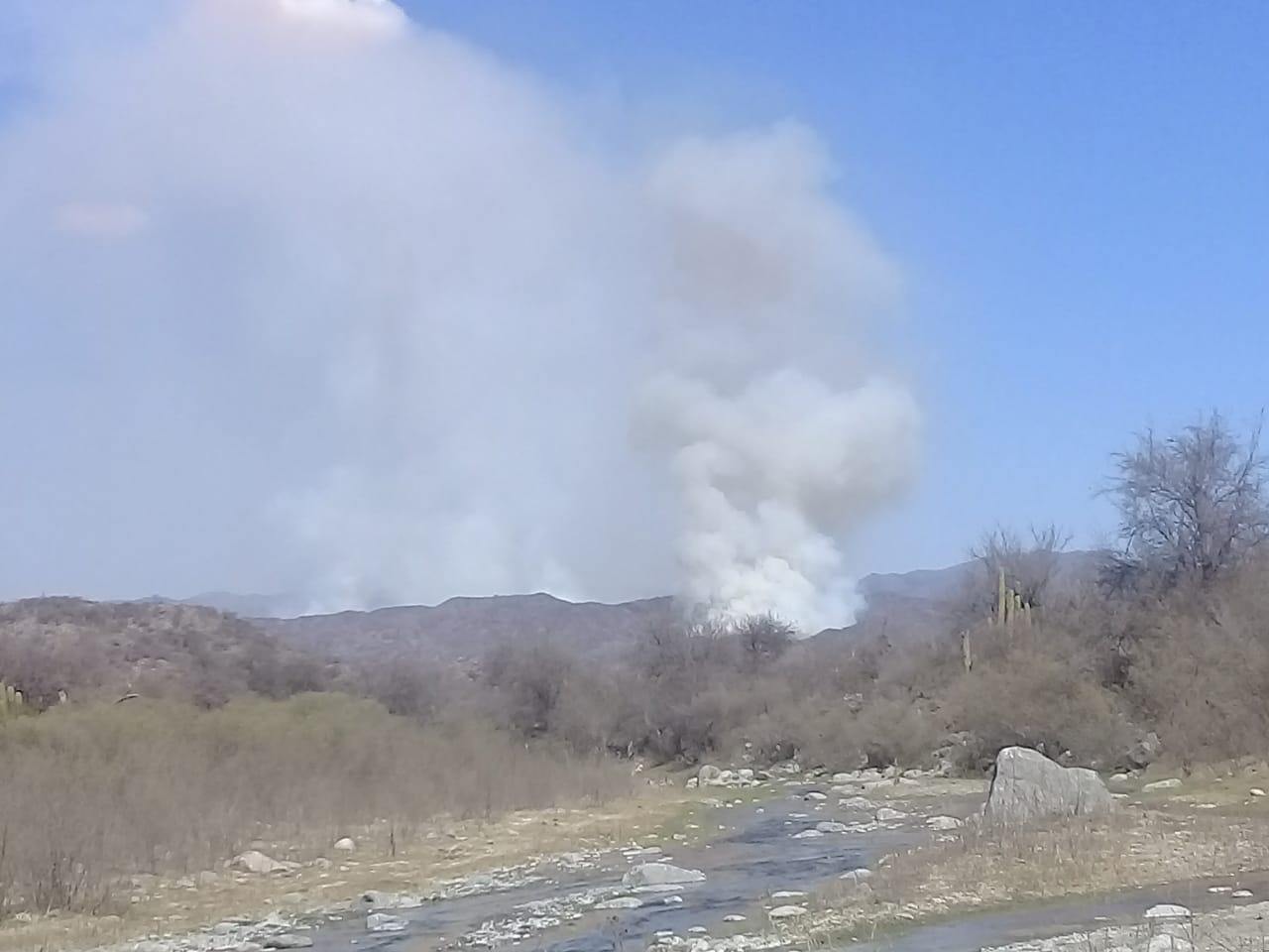 Según se informó, las llamas se iniciaron en la zona forestal de Las Juntas. Al parecer, fue provocado por lugareños con la intención de ahuyentar a los pumas que causan daño en la hacienda.