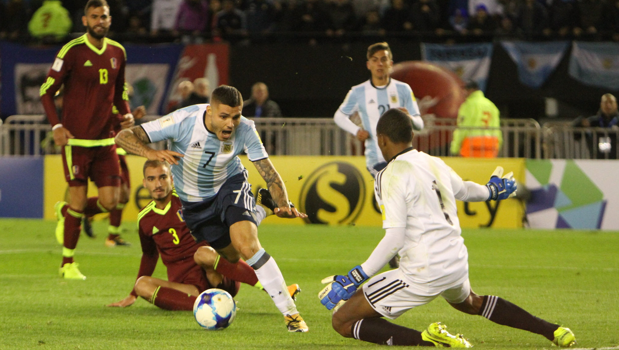 Otra vez Icardi marró su remate ante el arco venezolano ya a los 22’; Dybala metió un zurdazo demasiado cruzado a los 32’ y en el epílogo Messi hizo lucir, otra vez, a la figura de la etapa: Wuilker Fariñez.