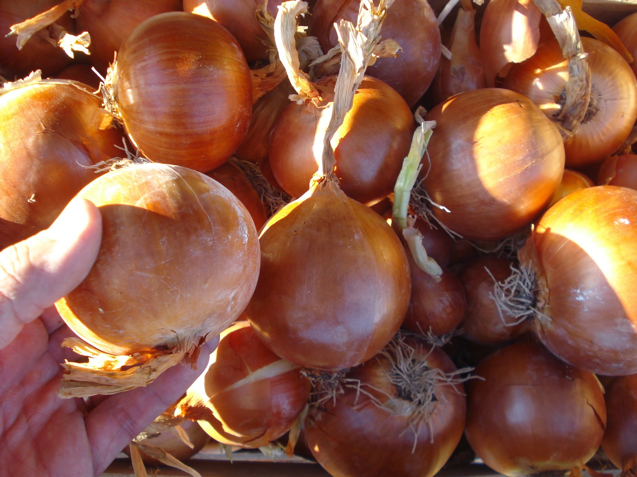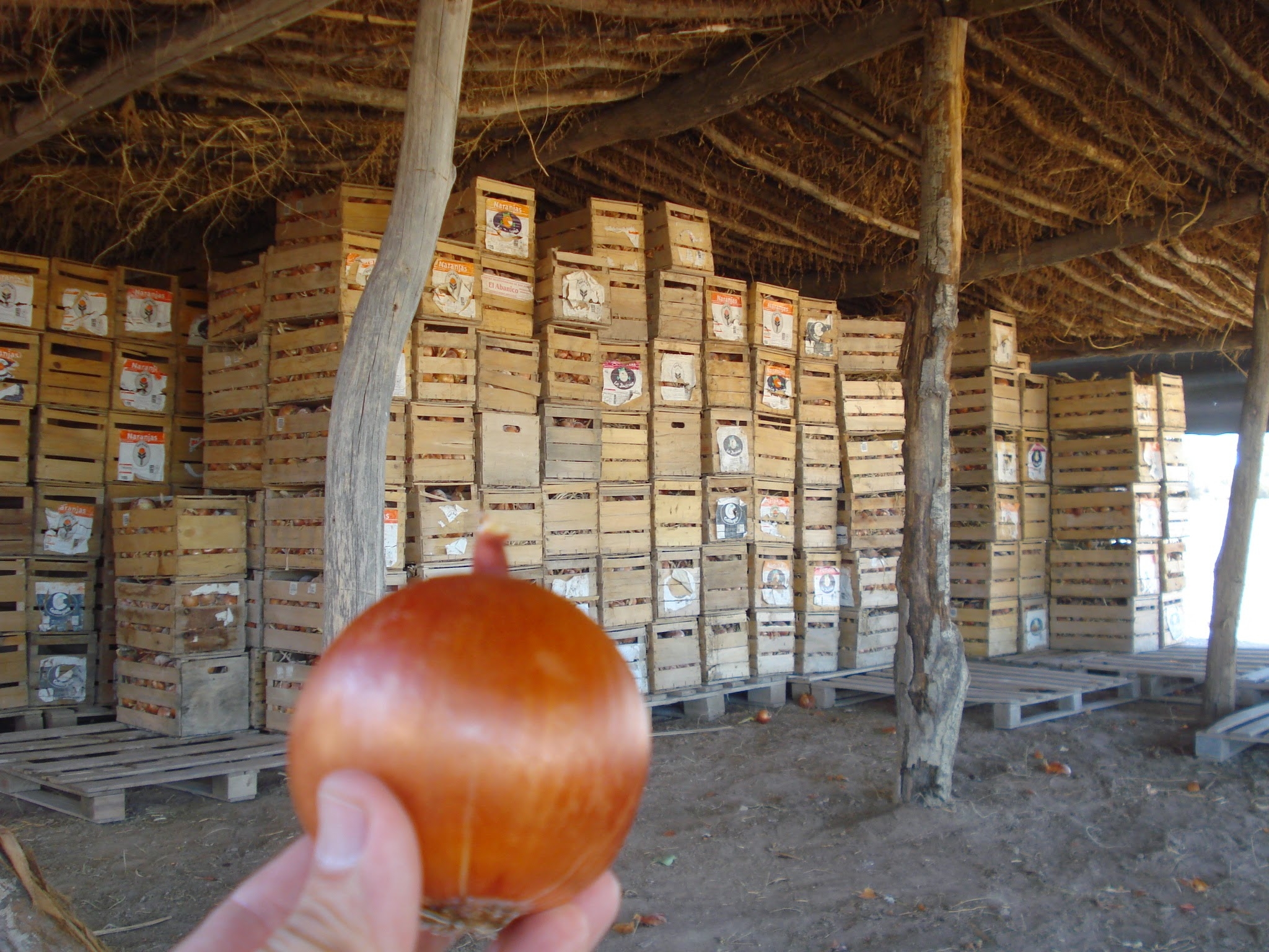 Siguiendo con la página anterior, cuando se cosecha cualquier cebolla, se arrancan, se dejan unos días al sol para que se sequen y se tapa con malezas, lo que se llama curado. Luego de 7 a 10 días, se colocan en el potrero en cordones o ballenas, que son montículos donde las ramas van para afuera y las cabezas para adentro. Se tapan con malezas secas y luego tierra. Ahí se produce el cierre del cuello, fundamental para que no se pudra.
