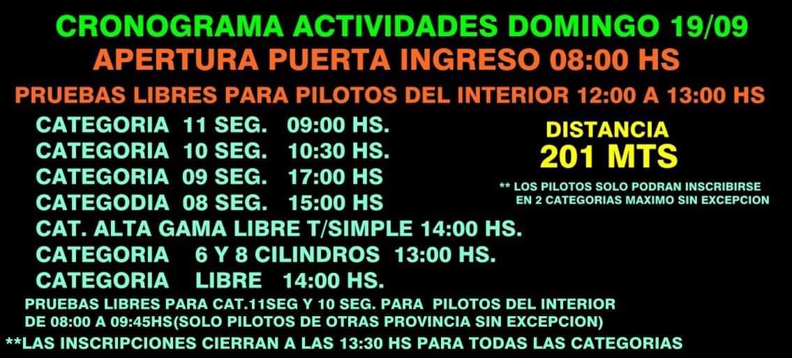 En cuanto al público, podrá asistir a las tribunas y boxes. Las entradas se venderán en la puerta del predio el domingo (único día permitido para ingresar al predio) a partir de las 8. Por protocolo sanitario, admitirán el 50% de la capacidad de gente, siempre y cuando asista con tapaboca.