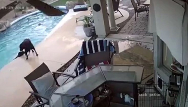 La cámara de seguridad que la familia Becerra tiene instalada en el jardín consiguió capturar el momento en que Remus salta a la piscina para salvar a su amigo, empujándolo con su hocico hacia el exterior, para luego salir por la escalinata a la que Smokey no podía llegar.