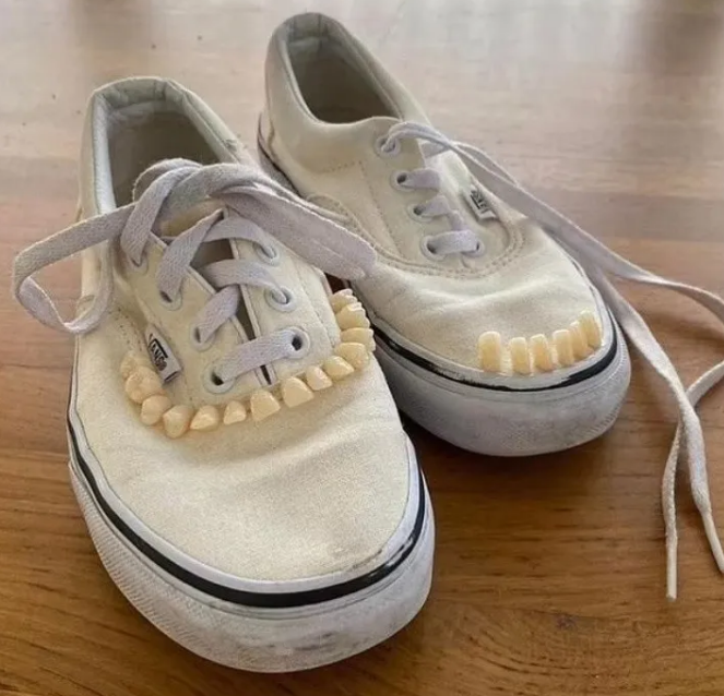 En los últimos días, se viralizó una insólita publicación. Un joven encontró a la venta un par de zapatillas, que tenían como adornos unos supuestos dientes humanos en la parte superior. El polémico diseño compartido en el sitio de ventas generó controversia entre los usuarios.