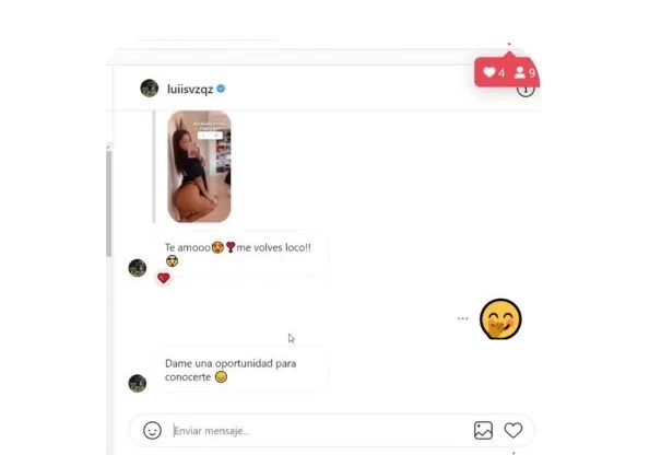 Ella entró a stalkear a Luis Vázquez, delantero de la reserva de Boca que viene sumando algunos minutos en primera. Por algún motivo decidió clickear en el botón de mensajes, donde se pudo observar que ya habían mantenido una mínima conversación por esa red social.