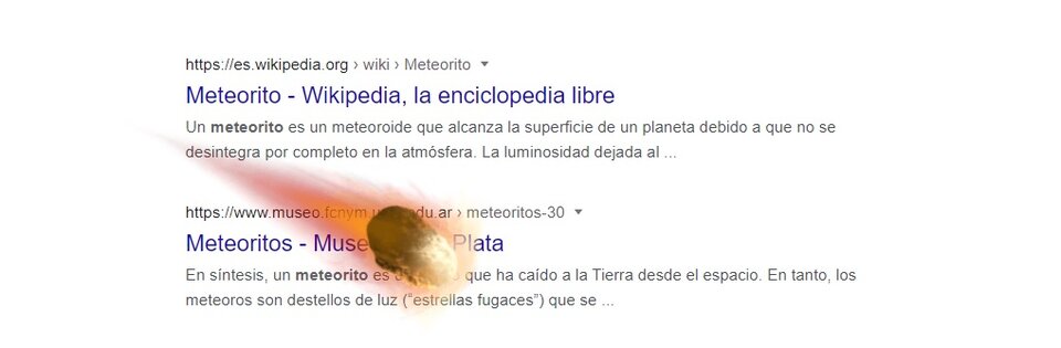 Para sorprender a los usuarios, Google vinculó la animación de un meteorito rodeado de fuego que recorre en diagonal la ventana de búsquedas y, al impactar con la esquina inferior derecha, los resultados arrojados se tambalean, tal como hizo la Tierra hace millones del años y terminó con la vida de los dinosaurios.