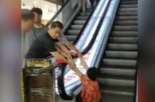 Una mujer perdió una de sus piernas después de quedar atrapada en una escalera mecánica. El episodio ocurrió en un centro comercial de China.