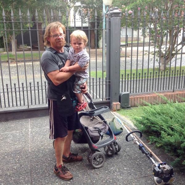 Gustavo perdió a su mujer Silvia hace apenas siete meses a causa de un accidente cerebrovascular (ACV). Con una madre con la que no se habla, sin padre, hermanos, cuñados ni suegros, tuvo que hacerse cargo de la crianza de su hijo Thiago, de apenas 2 años, y ahora sobrevive en el día a día ofreciendo el corte del césped de los frentes de las casas de la zona sur de Banfield, siempre con la compañía de su niño, que lo ayuda con una escoba y descansa en su cochecito.